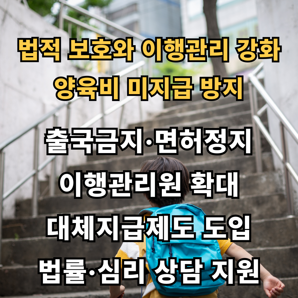 2025년부터는 출국금지, 운전면허 정지 등 강제조치와 함께, 이행관리원에서 대체 지급과 법률·심리 상담까지 원스톱으로 지원받을 수 있습니다.