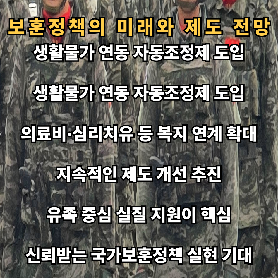 2025년 개정안은 국가유공자 보훈정책의 새로운 균형점을 찾았다는 점에서 의미가 있습니다. 단순히 ‘희생에 대한 예우’를 넘어 ‘남겨진 가족의 존엄한 삶’을 보장하는 제도로 방향을 전환한 것입니다.