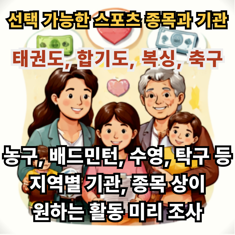스포츠강좌이용권을 활용하면 태권도, 합기도, 복싱, 축구, 농구, 배드민턴, 수영, 탁구, 유도, 체조, 골프 등 다양한 스포츠를 자유롭게 배울 수 있습니다.