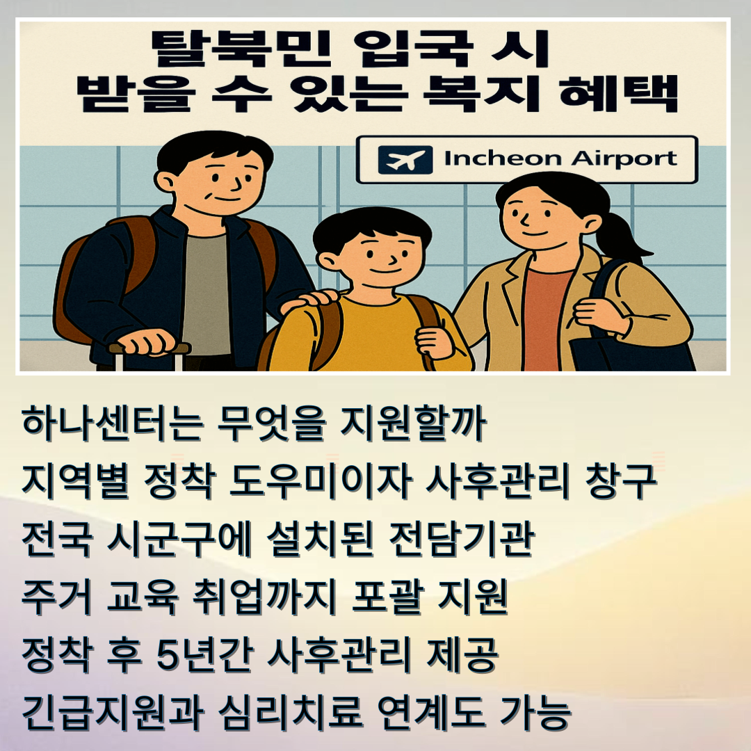 #탈북민복지 #북한이탈주민혜택 #탈북자정착금 #하나센터지원 #하나원적응교육 #정착지원금지급 #탈북민주거지원 #탈북민의료지원 #탈북민교육비 #탈북민창업지원 #탈북민자격증지원 #정착금신청방법 #탈북청년지원 #북한이탈청소년 #북한이탈대학생 #정착센터안내 #정착지원체계 #하나센터상담 #정착금사용처 #탈북민임대주택 #공공주택우선배정 #정신건강복지센터 #심리상담지원 #하나센터사후관리 #북한이탈주민법적지위 #2025복지정책 #북한이탈보호제도 #탈북민국민자격 #주민등록자동부여 #탈북자가족정착