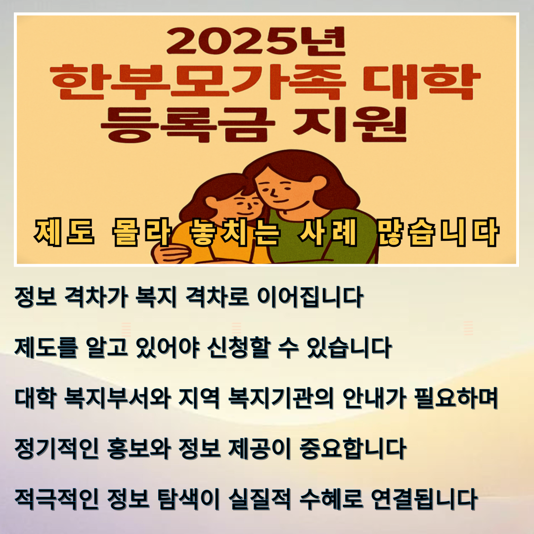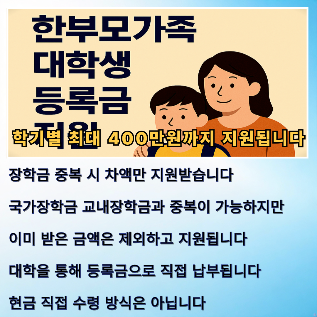 한부모대학생등록금 제도는 단순히 등록금을 줄여주는 정책을 넘어 복지 사각지대를 줄이는 기능도 수행합니다.
