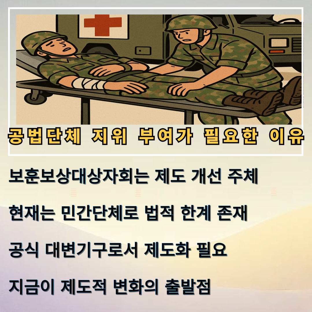 사단법인 보훈보상대상자회는 이 같은 문제를 꾸준히 제기하며, 제도 개선과 사회적 인식 확산을 위해 노력하고 있지만 아직 공법단체 지위조차 부여받지 못하고 있습니다. 지금 필요한 것은 정형화된 보훈 틀을 벗어나, 복무 사실에 기반한 실질적 예우를 제도화하는 일입니다. 국가가 약속한 보훈의 가치는 현실에서 증명되어야 합니다.