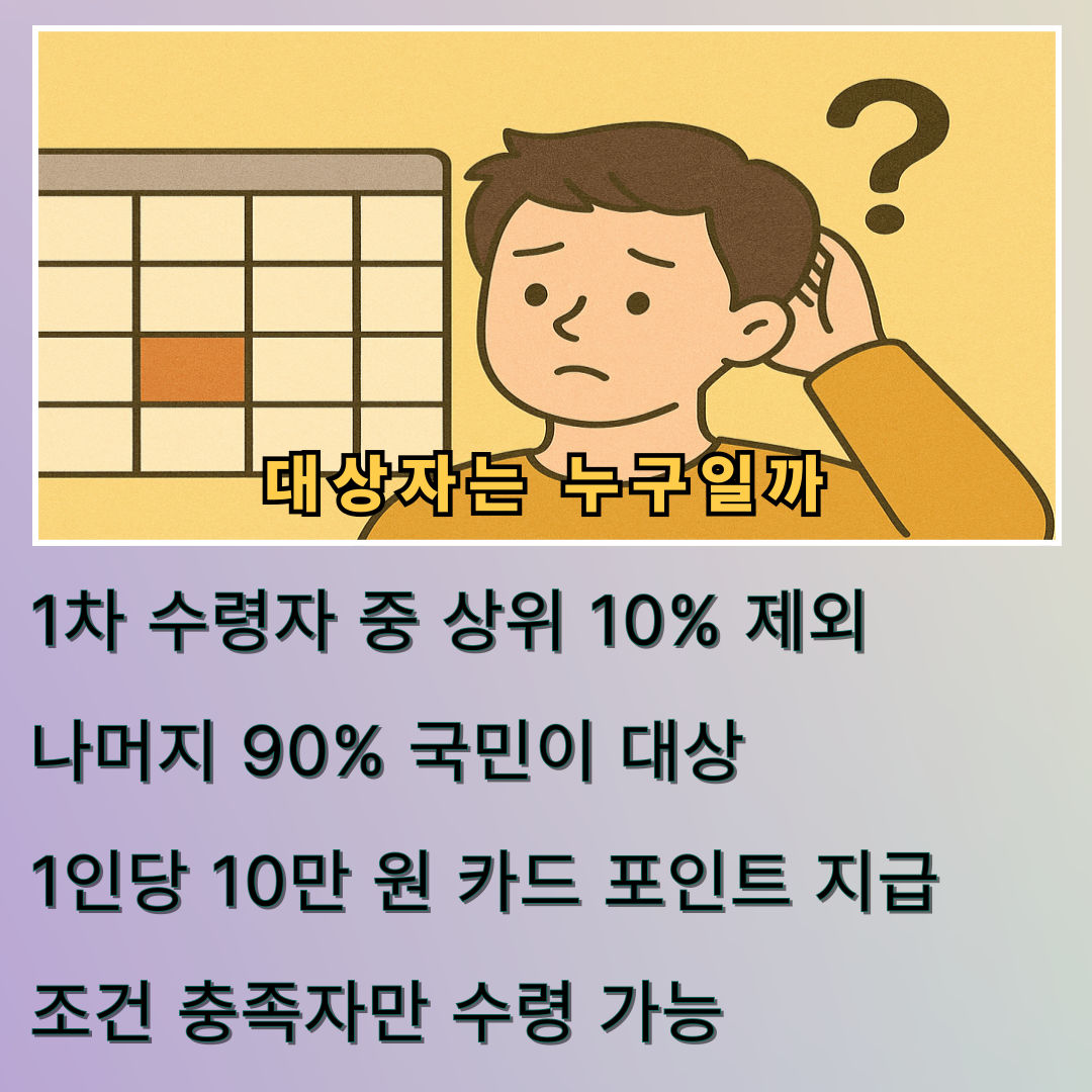 1차 수령자 중 상위 10%를 제외한 90% 국민에게 10만 원씩 지급되는 이 제도는 카드 포인트 혹은 지역상품권 형태로 제공되며, 신청은 9월 22일부터 10월 31일까지입니다. 신청 채널은 카드사 앱, 지역상품권 앱, 주민센터 방문, 콜센터 등 다양하며, 사용기한은 11월 30일까지입니다. 이 글에서는 단순한 안내를 넘어서, 실제 소비자 입장에서 반드시 알아야 할 구조적 차이와 실전 활용 정보를 정리해드립니다.