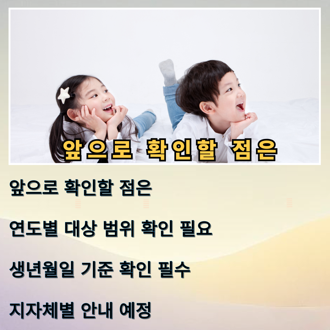 단일 연령 전체가 자동 포함되는 구조가 아니므로, 연도별 시행 범위와 대상 확인이 필수입니다. 이번 제도 개편은 향후 교육 복지와의 연계 가능성도 포함한 통합적 복지 구조의 기초가 될 것으로 보입니다.