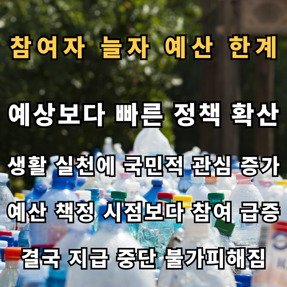 이번 정책 중단은 참여자 수가 예상보다 급증한 것이 결정적 원인이 되었으며, 갑작스러운 발표로 인해 정책 신뢰에 대한 사회적 논란이 일었습니다.